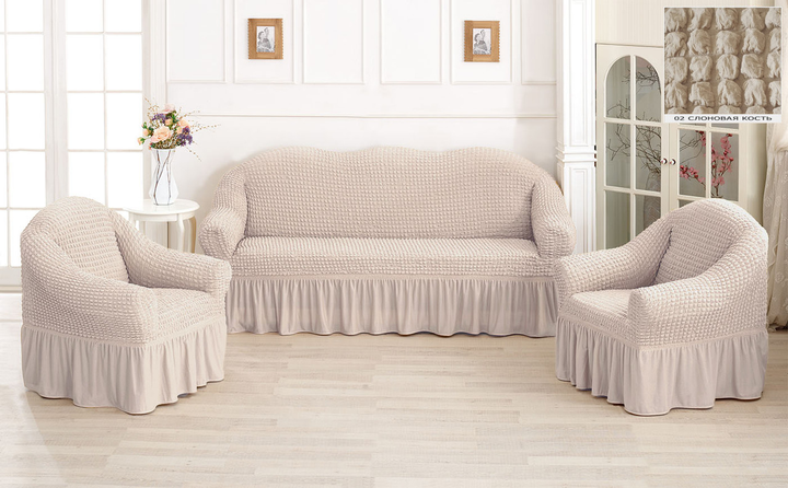 Жакардові чохли на стільці Volna з спідницею Ванільні