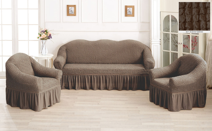 Жакардові чохли на стільці Roza з спідницею Коричневі