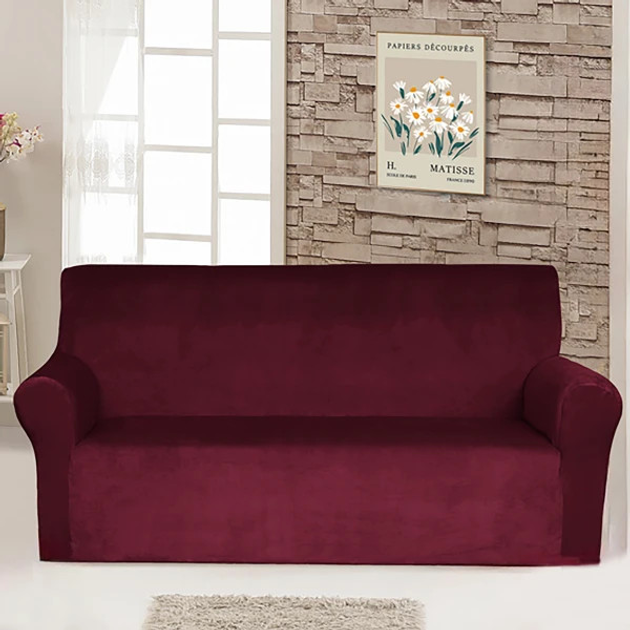 Чохол на диван тримісний велюровий Love You 81161 бордовий