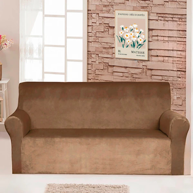 Чохол на диван тримісний велюровий Love You 81142 коричневий