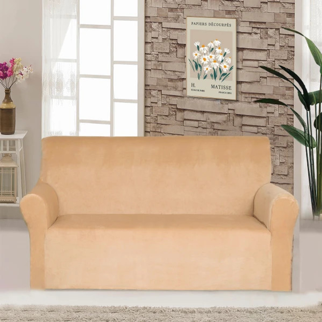 Чохол на диван тримісний велюровий Love You 81141 бежевий