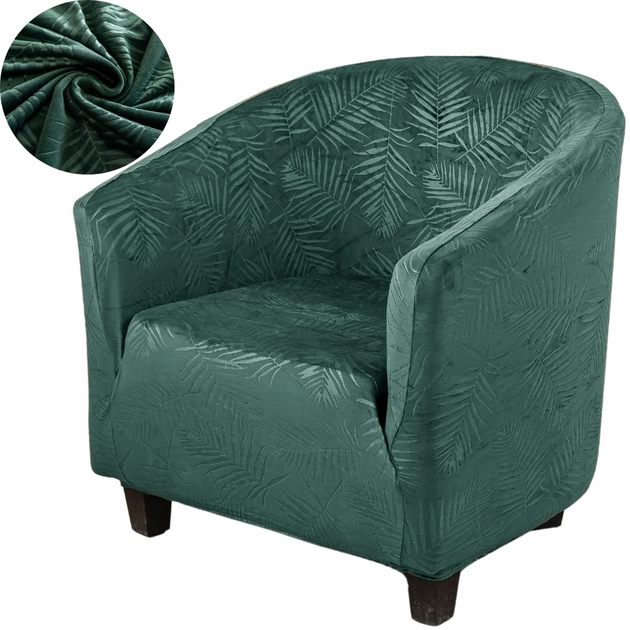 Чохол на клубне крісло, еластичний велюр, оксамит Domidekor Пальмове листя, зелений (3803)
