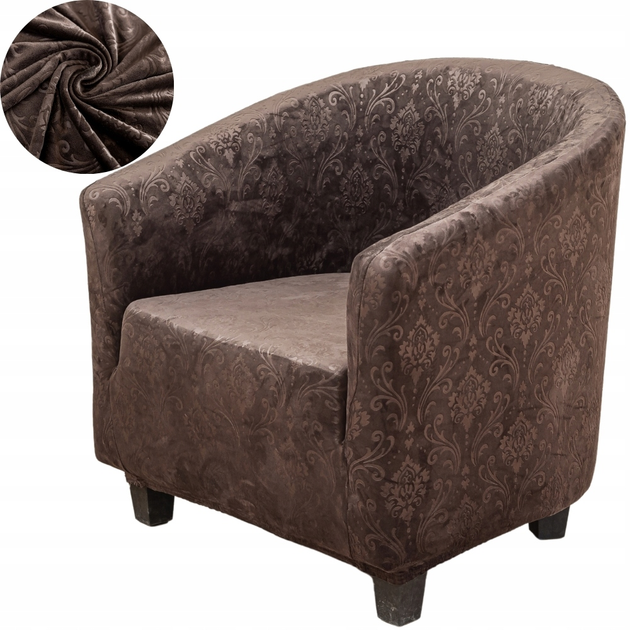 Чохол на клубне крісло, еластичний велюр, оксамит Domidekor з орнаментом, коричневий (3805)