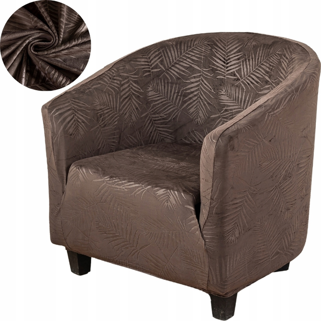 Чохол на клубне крісло, еластичний велюр, оксамит Domidekor Пальмове листя, коричневий (3804)