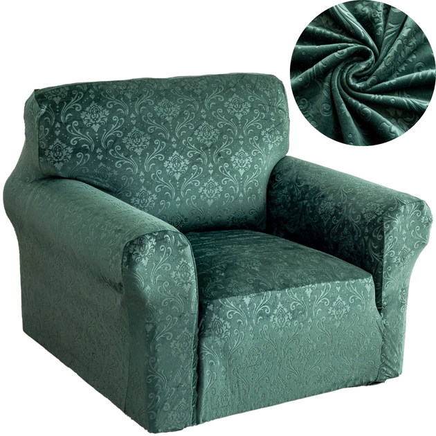 Чохол на крісло, диван, еластичний велюр, оксамит Domidekor Embross ornament, зелений 90-140 см (3849)