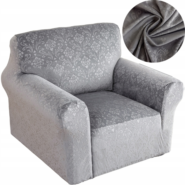 Чохол на крісло, диван, еластичний велюр, оксамит Domidekor Embross ornament, сірий 90-140 см (3851)