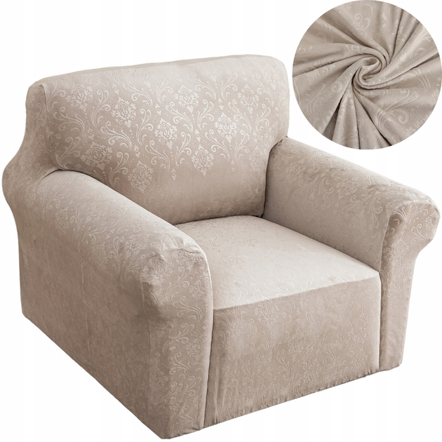 Чохол на крісло, диван, еластичний велюр, оксамит Domidekor Embross ornament, бежевий 90-140 см (3850)