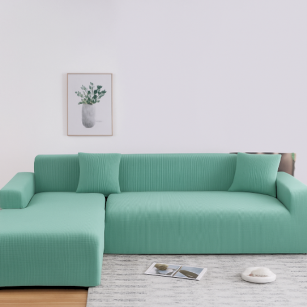Чохол на кутовий диван з двох частин світло-зелений Slavich Стрейч Жаккард 3 + 3
