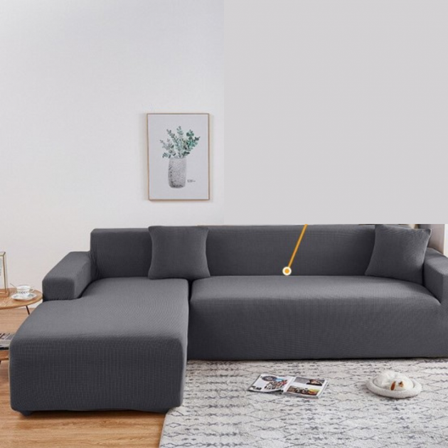 Чохол на кутовий диван з двох частин сірий Slavich Стрейч Жаккард 3 + 3