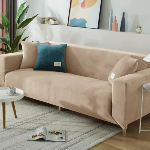 Велюровий чохол на 4-місний диван велюр Homytex, Пісочний, 235x300 см