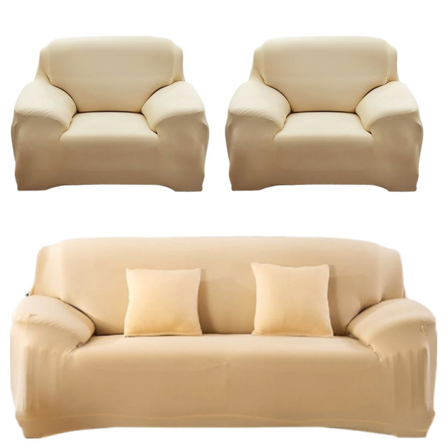 Чохли на диван та два крісла натяжні без оборки Venera 07-2141 (універсальні) Кремовий