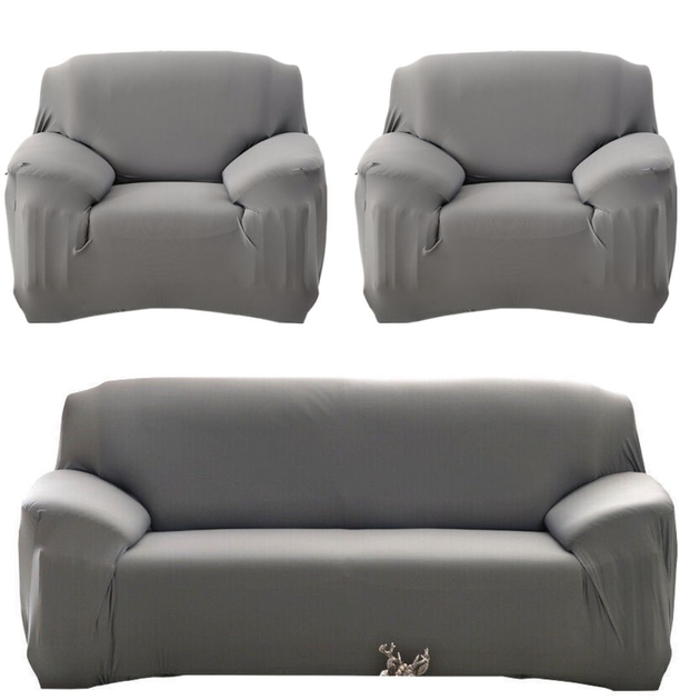 Комплект Чохол на диван + 2 крісла Еластичний Біфлекс Homytex, Сірий, 190x230 см, 90x140 см