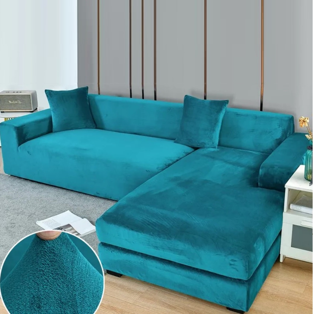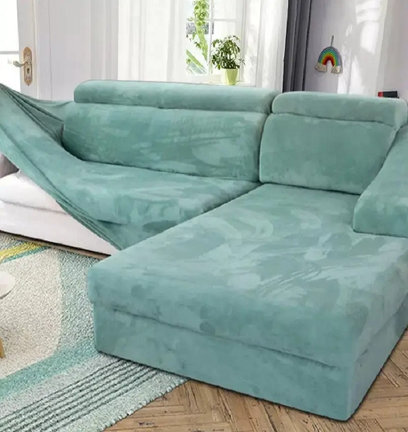 Набір чохлів на кутовий диван велюр 3.2 Homytex 195х230 см і 145х185 см, М'ятний