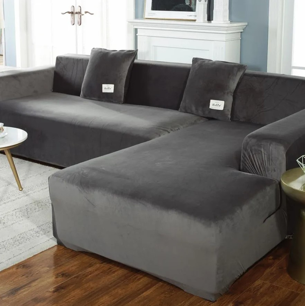 Набір чохлів на кутовий диван велюр 3.2 Homytex 195х230 см і 145х185 см темно-сірий