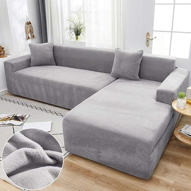 Набір чохлів на кутовий диван велюр 3.2 Homytex 195х230 см і 145х185 см світло-сірий