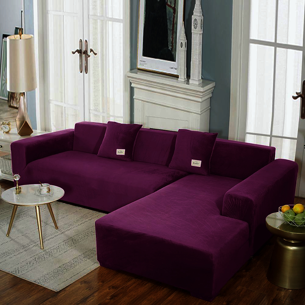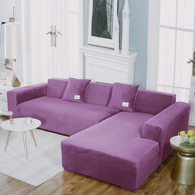 Набір чохлів на кутовий диван велюр 3.2 Homytex 195х230 см і 145х185 см фіолетовий