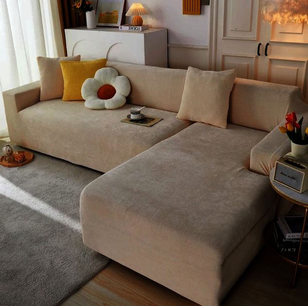 Набір чохлів на кутовий диван велюр 3.2 Homytex 195х230 см і 145х185 см бежевий