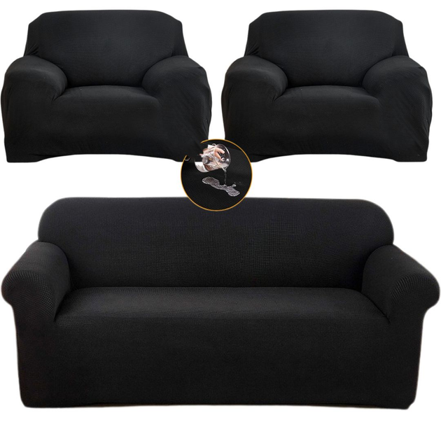 Чохол на диван + 2 крісла водовідштовхувальний трикотаж-жатка Homytex, Чорний, 195x230 см