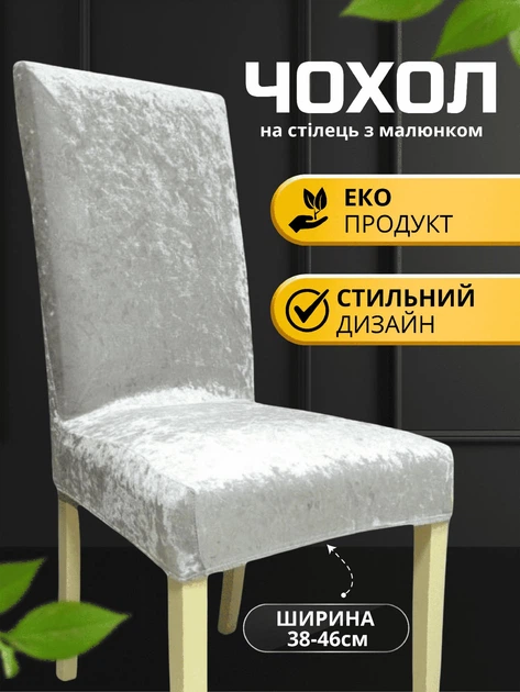 Чохол для стільця VIP велюр в столову зі спинкою еластичний універсальний натяжний велюровий Gospo 0042 Світло-Сірий (Туречч