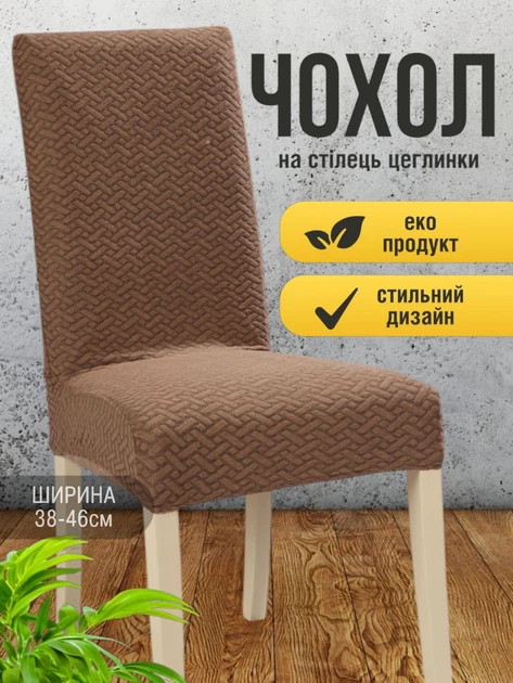 Чохол для стільця зі спинкою еластичний універсальний натяжний жакард цеглинки Gospo 0085 Коричневий