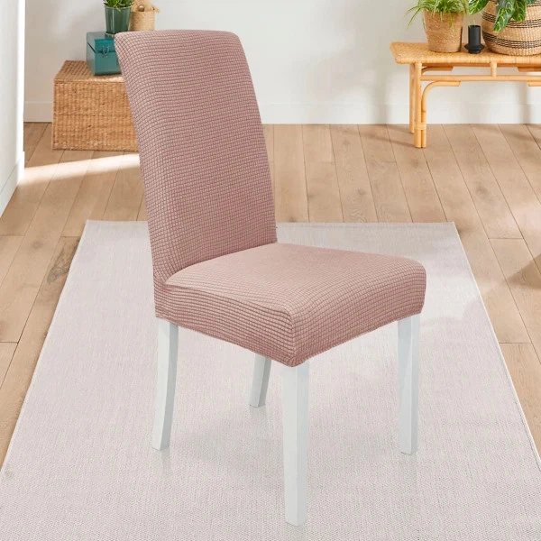 Чохол для стільця зі спинкою еластичний універсальний натяжний жакард візерунок Gospo 0075 рожевий (Туреччина)