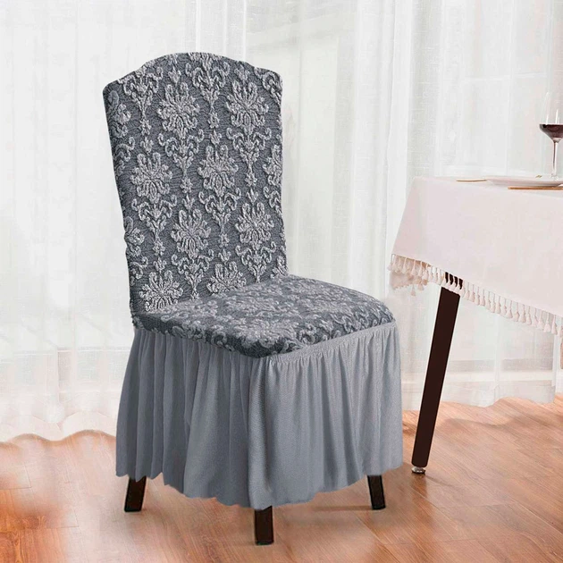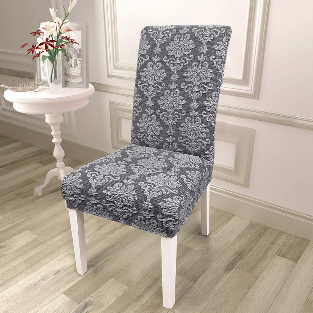 Чохол на стілець універсальний жакардовий без оборки сірий Love You (A-025362)