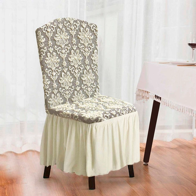 Чохол на стілець універсальний жакардовий кремовий Love You (A-025058)