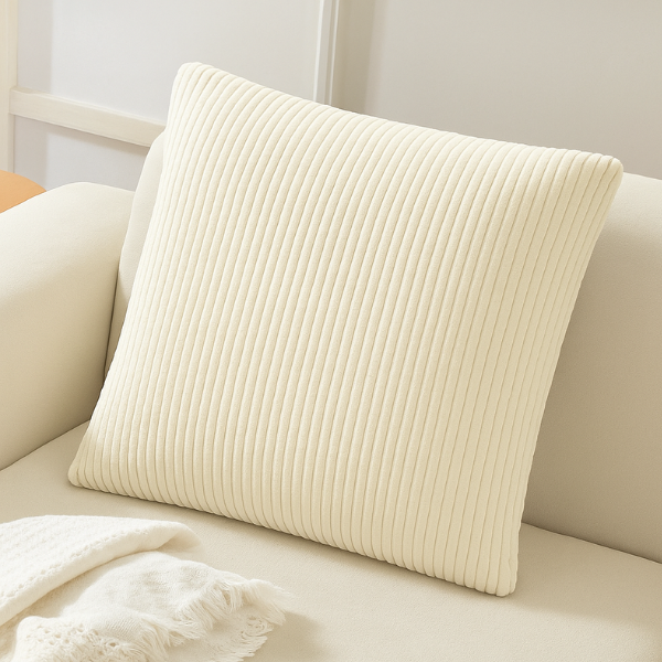 Велюровий чохол для подушки з меблевої тканини Lotos 02 у смужку кремовий 60x60