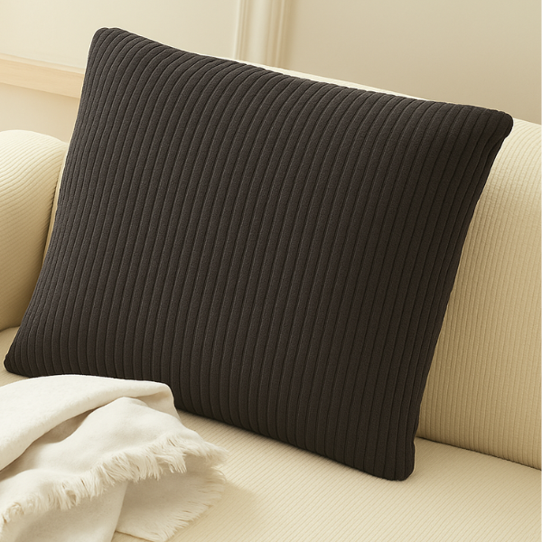 Велюровий чохол для подушки з меблевої тканини Lotos 20 у смужку коричнево-сірий 60x60