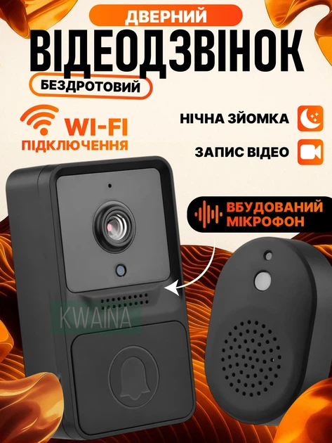 Бездротовий дверний WIFI відеодзвінок домофон з камерою кут огляду 90 градусів, двосторонній зв'язок, нічне бачення, мобільн