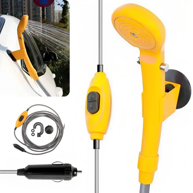 Душ портативний автомобільний Vexal 12 В від прикурювача з виносним вимикачем жовтий (М1109)