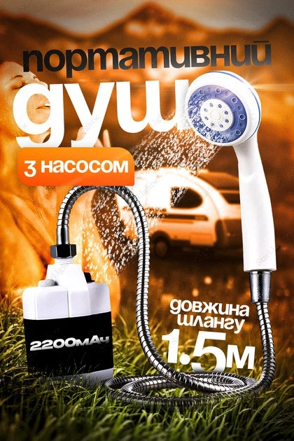 Переносний душ з акумулятором 2200 мАч - автономний портативний душ для дачі, кемпінгу, авто та відпочинку на природі