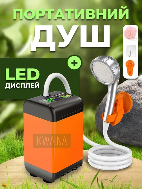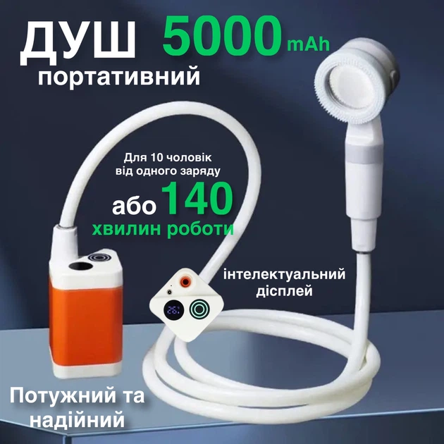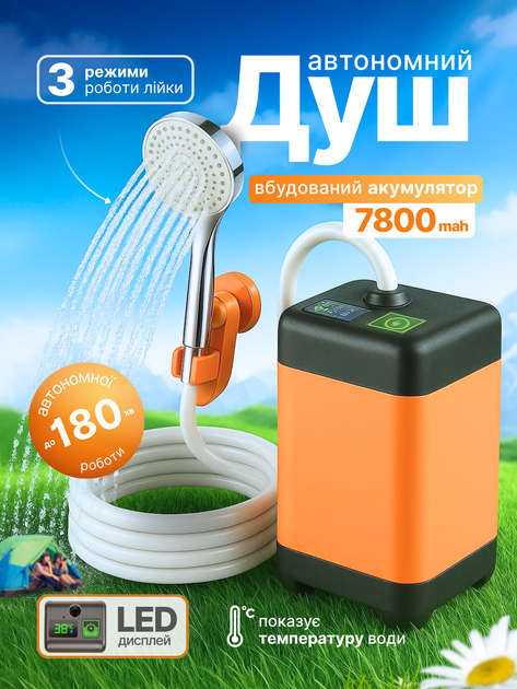 Портативний душ на акумуляторі 7800 mAh похідний туристичний переносний з датчиком температури (SHOWER-7200T2)