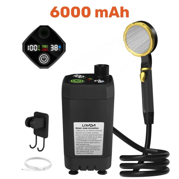 Портативний душ для кемпінгу та купання з акумуляторним USB-насосом 3.7 V, батареєю 6000 mAh, мобільний душовий комплект для