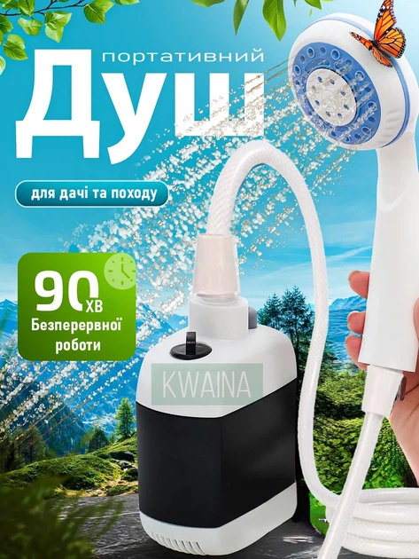Туристичний душ з насосом на акумуляторі 2200мАч, портативний похідний душ з помпою, фільтр, високий напір заряджання від US