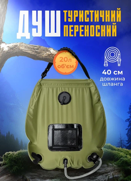 Туристичний переносний душ на 20 літрів зелений портативна душова сумка для кемпінгу матеріал ПВХ