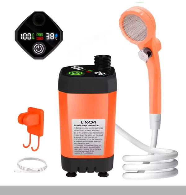 Портативний душ для кемпінгу та купання з акумуляторним USB-насосом 3.7 V, батареєю 6000 mAh, мобільний душовий комплект для