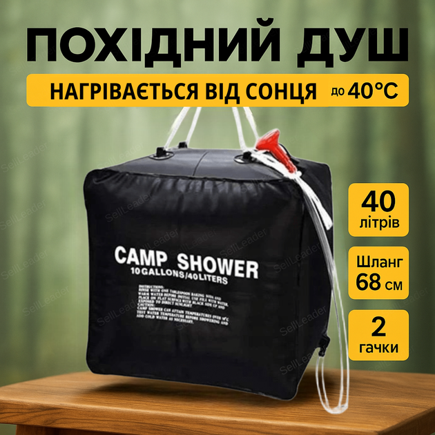 Похідний душ 40л підвісний кемпінговий туристичний комплект сонячний підігрів для дачі гідратор тактичний