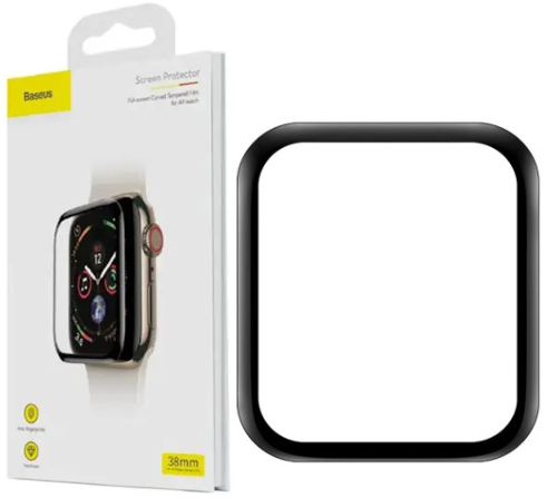 Захисне скло Apple Watch 1/2/3 38 mm з чорною рамкою на весь дисплей 0.23mm Full-screen Curved Tempered Glass, Baseus (SGAPW