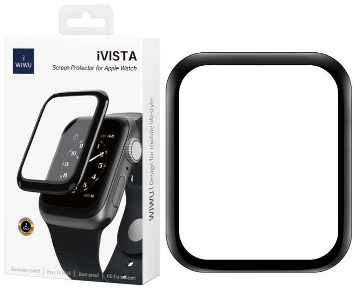 Захисна плівка Apple Watch 4/5/6/SE 40 mm з чорною рамкою 0.2 mm 2.5D 9H Screen Protector WIWU комплект 2шт