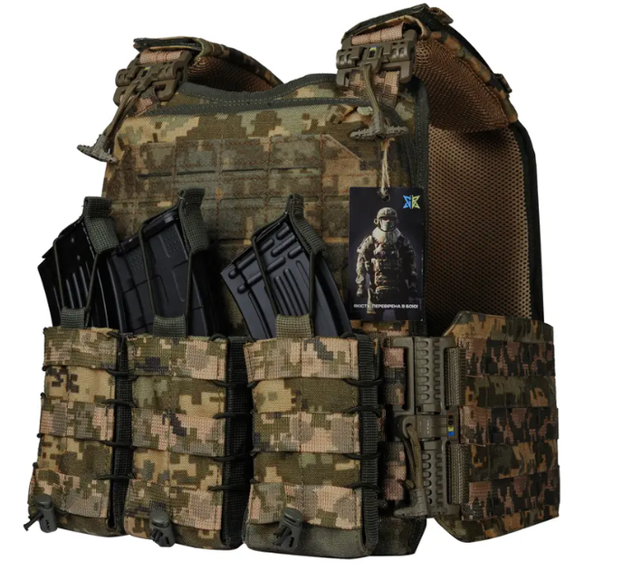 Військовий жилет плитоноска для бронепластин з боковими кишенями для плит 30х25см Піксель