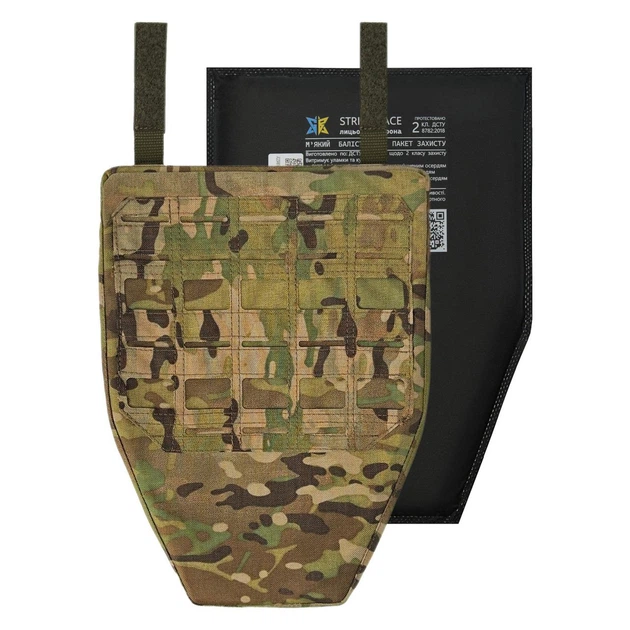 Фартух з м'яким балістичним бронепакетом для плитноски 2 класу захисту ДСТУ. Мультикам.
