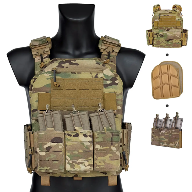 Військовий жилет (плитоноска) тактична Yakeda 1000D MULTICAM зі швидким скиданням та модульними підсумками