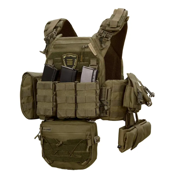 Плитоноска бронежилет з підсумками та зі швидкознімною сумкою напашник та розвантажувальним поясом РПС вар Белт Олива WOS-00