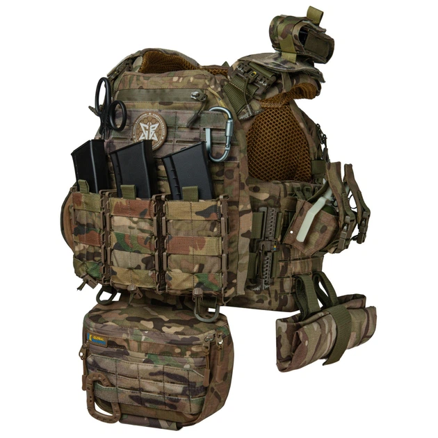 Плитоноска Warmor Gen. 6 Pro Max Мультикам з 6 тактичними підсумками + комбінований підсумок органайзер під 3 магазини АК/AR