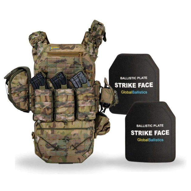 Комплект полегшених керамічних балістичних плит клас NIJ IV (6 кл. захисту ДСТУ) від GlobalBalListics з плитоноскою Warmor G