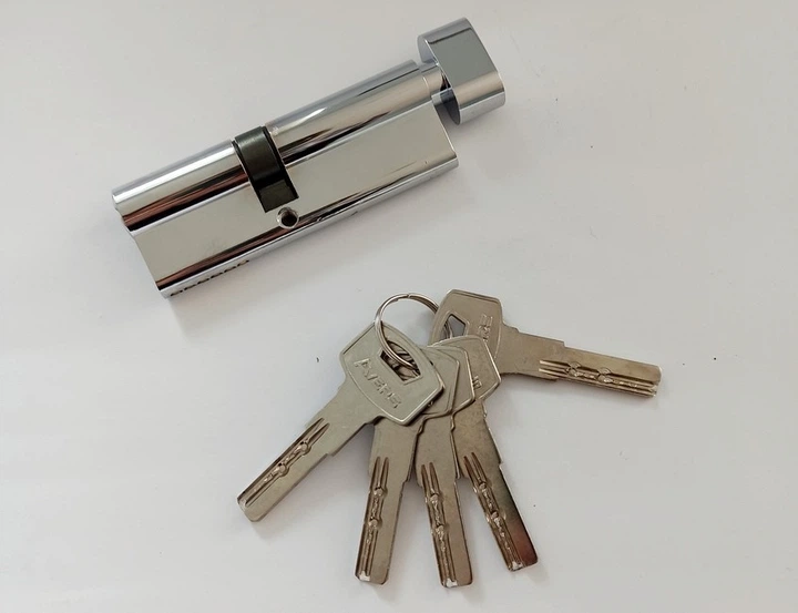 Дверний циліндр (серцевина) Bruno Лазерний 50*40мм поворотник/ключ Хром полірований