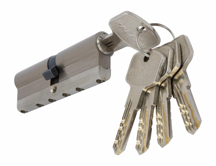 Циліндр латунний з вставкою PALADII SE 90 mm (Т35*55) 5 гібридних ключів SN з вертушком, сатин (ПЦ040)