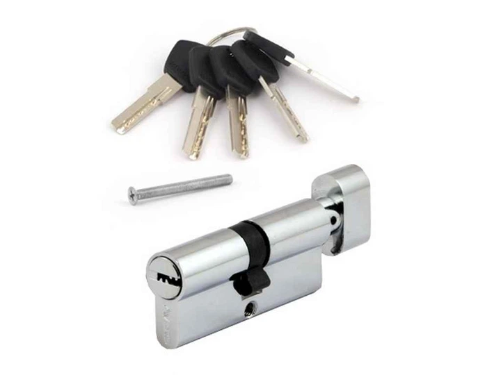 Дверний циліндр (серцевина) RDA 58716 Англійський 40*40мм поворотник/ключ Хром полірований