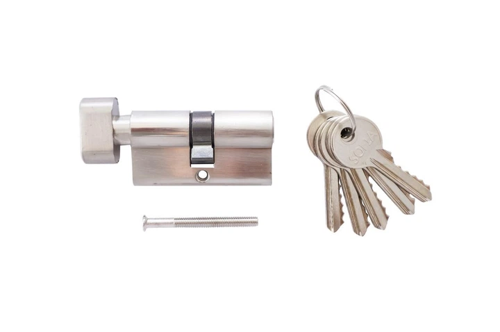 Циліндр англійський FZB 60 мм 30/30 к/п SN цинк замок для дверей ключ-поворотник (D-IT22-C)